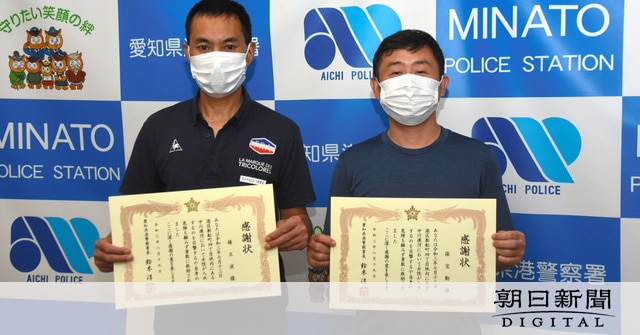 自殺しようとした女性を川の中に入って助けたとして、愛知県警港署は19日、中国人の男性2人に感謝状を贈った。