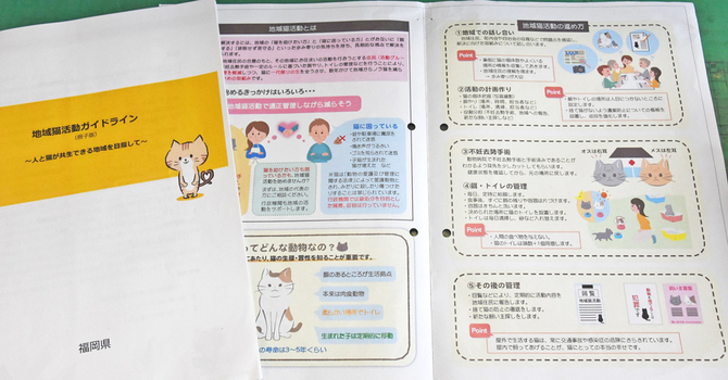 野良猫にまつわるトラブルを解決しようと、福岡県は地域住民が協力して去勢手術を施し飼育・管理する「地域猫活動」のガイドラインを作成した。冊子で猫の生態や保護状況、活動の心構え、取り組み例などを紹介。県内の殺処分件数は減少傾向にある一方、野良猫についての苦情件数は横ばい状態にある。猫への憎悪が虐待を誘発する懸念もあり、県はガイドラインを周知し、活動を広げたい考えだ。