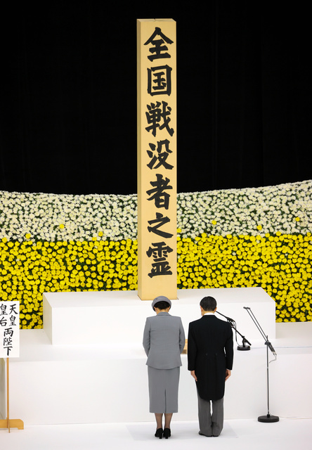 天皇、皇后両陛下は15日、日本武道館(東京都千代田区)で開かれた全国戦没者追悼式に出席した。天皇陛下は「おことば」で戦没者を悼むとともに、昨年に続きコロナ禍に言及。「私たち皆がなお一層心を一つにし、力を合わせてこの困難を乗り越え、今後とも、人々の幸せと平和を希求し続けていくことを心から願います」と述べた。
