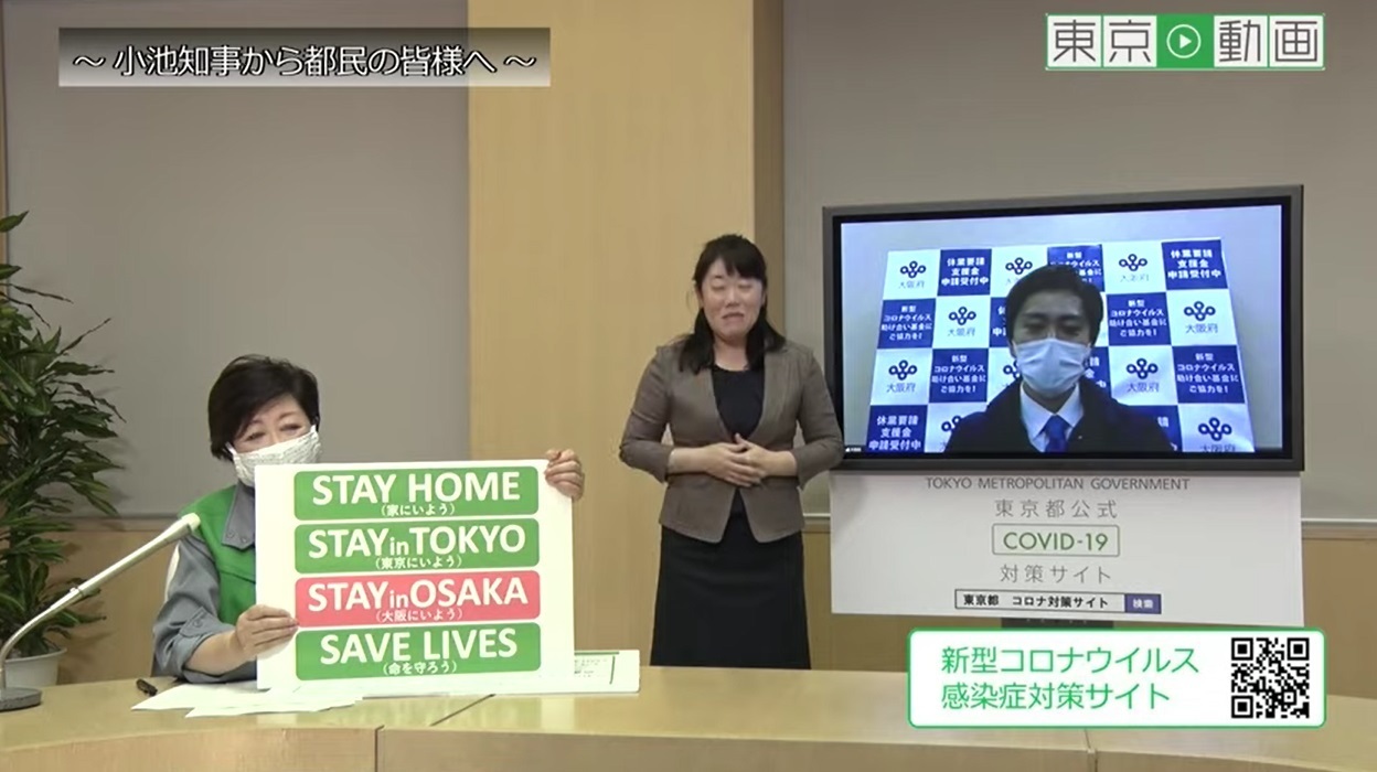 東京都の小池百合子知事は30日夜、新型コロナウイルスの感染状況などを発表するインターネット上のライブ動画に大阪府の吉村洋文知事をゲストに迎えた。この中で、2人は緊急事態宣言下における知事の裁量権拡大を国に求めていくことなどで共同歩調を取ることを確認した。