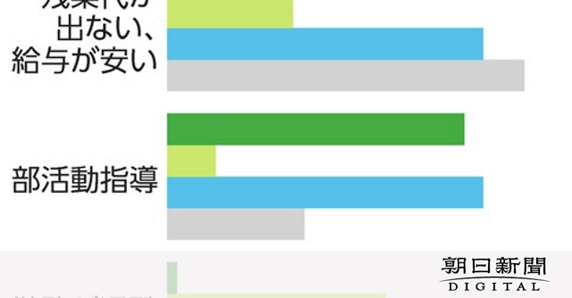 教職が厳しい職と言われる理由としては、4大学のうち3大学で「労働時間が長い」「残業代が出ない、給料が安い」「部活動指導」が上位を占めた。