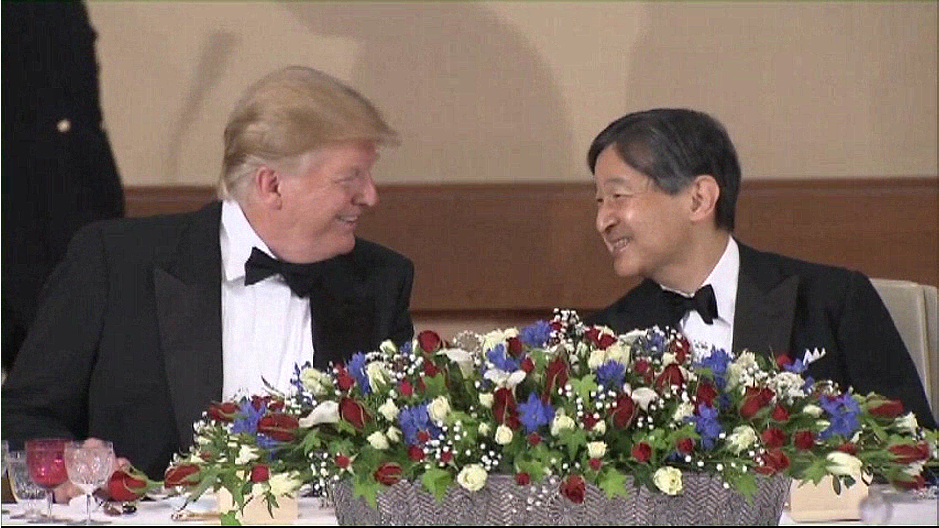 令和最初の国賓として来日したトランプ米大統領夫妻を歓迎する天皇、皇后両陛下主催の宮中晩さん会が27日夜、皇居・宮殿で開かれた。