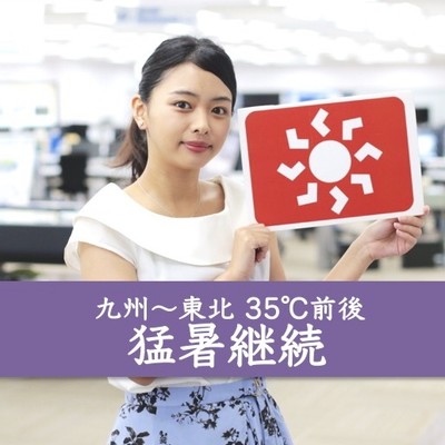 西日本から東北太平洋側の広い範囲で、夏の日差しが照りつけます。紫外線対策はシッカリと行ってください。引き続き気温が高いので、熱中症対策もお忘れなく。山沿いは午後ほど天気急変の恐れがあります。空の状態に注意してください。