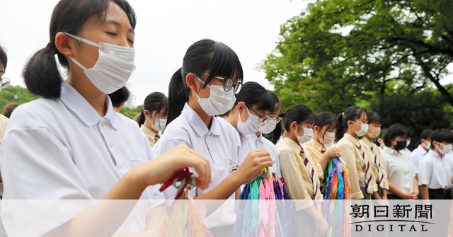 広島市の松井一実(かずみ)市長が平和宣言。77年前の原爆で母を失った当時16歳の女性の被爆体験を紹介し、「一刻も早く全ての核のボタンを無用のものにしなくてはならない」と訴えた。