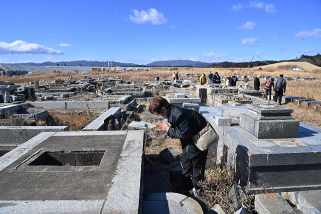 地震と津波の被害を受けた双葉町の沿岸部にある共同墓地。防災林の整備のため、廃止が決まった。今月5日の墓じまいには、避難先から20人以上の住民が集まった。「10年ぶり。震災後初めて会った人もいたよ」と元ご近所さん同士の再会もあった。