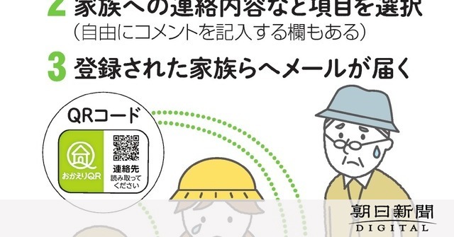 迷子になった人の衣類や持ち物に貼られたシールのQRコードを発見者が読み取り、家族に居場所や状況をメールで伝える――。こんなサービスを、地図を出版する昭文社(東京都千代田区)が始めた。子どもや認知症のお年寄り、ペットまで幅広く活用できると好評だ。開発のきっかけは、ある社員の「後悔」体験だった。