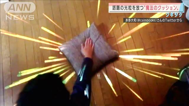 光を放つ魔法のクッションが話題です。 話題の不思議なクッション。クッションをたたくと電子音とともに光の粒が。まるでイリュージョンのようです。後からCGを合成したわけではありません。一体、どうなっているのでしょうか。