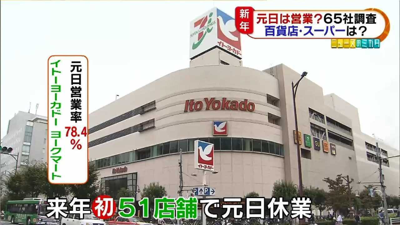 「一体どこが開いていて、どこが閉まっているのか 」についてコンビニ・外食・百貨店・スーパーマーケットなど、身近な65社の「元日営業」について徹底調査した。