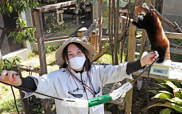 北九州市立の動物園「到津(いとうづ)の森公園」に4頭いるレッサーパンダの飼育などを担当する。動物の退屈な時間を減らそうと工夫を重ねてきた。野生なら一日中、食べ物を求めて森を移動しているはずだ。えさを木の枝など動物舎のあちこちに隠したり、中身を取り出すのに一工夫いる給餌(きゅうじ)器をつくったり。野生のレッサーパンダのすみかを自分の目で確かめようと、ネパールの山岳にまで足を運んだ。