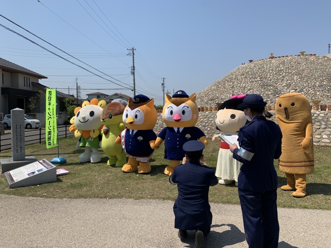 名古屋市守山区の「しだみ古墳群ミュージアム」では、地元のゆるキャラ、守山区の「モリスちゃん」や尾張旭市の「あさぴー」など6体が集まり、警察官と一緒に防犯意識を高める動画を撮影しました。
