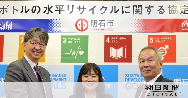 2社とも明石市内に飲料工場がある縁もあって締結に至ったという。3者はこの日会見し、丸谷聡子市長は「今まさに持続可能な循環型社会への行動が求められている。市と、市内で活動する事業者が協定を結ぶことは、その一歩になる」と話した。(天野剛志)