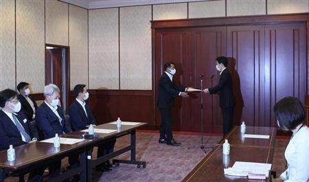 大阪府の吉村洋文知事は4日、府内の医療従事者らを支援する「新型コロナウイルス助け合い基金」に5千万円以上の寄付をした4法人・団体に感謝状を贈った。