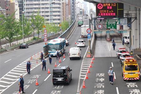 同日午前6時ごろ、大阪市中央区の阪神高速・法円坂の入り口では、山形県警の警察官らが入り口の前に「G20大阪サミットのため封鎖されます」との看板やカラーコーンを置き、高速に入ろうとする車を一般道に誘導していた。