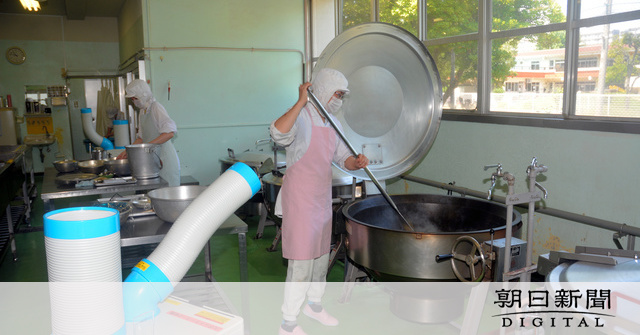 コロナ禍による小中学校の夏休みの短縮に伴い、県内の一部の自治体では給食が8月に入っても続いている。冷房のない調理室の場合、室温は40度に上る場合もある。現場はコロナ対策に加えて、食中毒の防止、調理員の熱中症防止に神経を使っている。