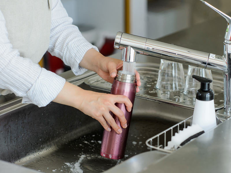 「毎日のように使う水筒は直飲みするタイプも多いだけに、ニオイや雑菌、カビ、黒ズミなどを心配する方が多いのです。ただ、固いスポンジでゴシゴシ洗ってしまったり、食洗機を使うと、水筒の劣化や変形につながります」と言うのは、全国で家事代行サービスなどを展開するカジタク・サプライヤチームの鈴木健吾さんです。 鈴木さんがオススメする正しい洗い方をご紹介しましょう。 【水筒の洗い方の基本】