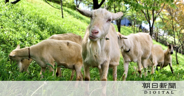「除草隊」は除草作業を請け負う会社「フルージック」(同市)に所属している。初日の14日は、市の依頼で同市中部台6丁目の緑地「さくら広場」に出勤。自由自在に斜面を行き来して、雑草をむしゃむしゃと食べて除草した。