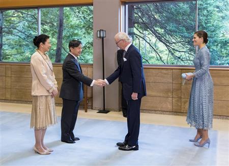 「即位の礼」の中心儀式「即位礼正殿の儀」から一夜明け、天皇、皇后両陛下は23日、正殿の儀などに参列した王族らをお住まいの赤坂御所に招き、茶会を催された。