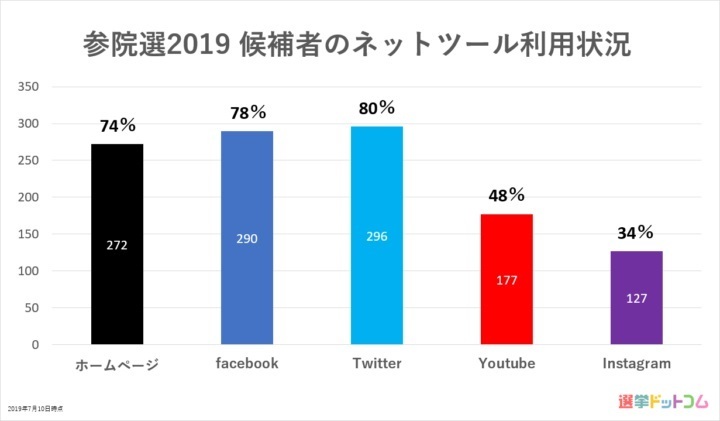 候補者の80%がTwitterを利用。前回(2016年)より大幅に増加!