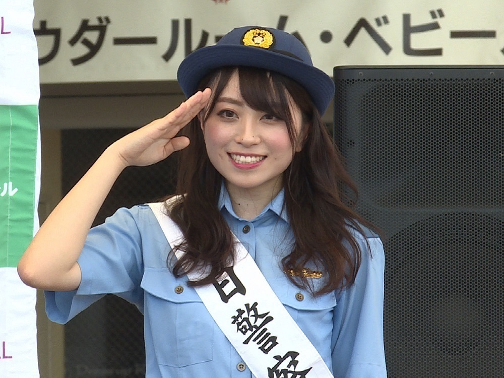 今年3月のミス・キャンパスで優勝し、「日本一美しい女子大生」として人気を集めています。16日は一日署長としてイベントに登場し、「フィッシング詐欺」への注意を呼びかけました。