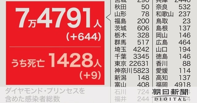 新型コロナウイルスの国内感染者は11日午後9時現在で、新たに644人が確認された。死者は9人増えた。東京都では187人の感染が確認され、1日あたりの感染者は4日連続で100人を上回った。「人工呼吸器か体外式膜型人工肺(ECMO)を使用」とする都基準の重症者数は、前日から1人増えて24人になった。
