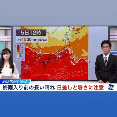 日本付近は今週後半から来週前半にかけて暖かな空気に覆われ、全国的に気温が上がります。梅雨入りまで暑さが続きそうです。