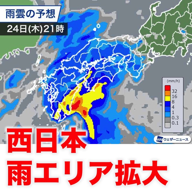 東シナ海で発生した低気圧は、午前中から九州などに雨を降らせています。このあと、明日25日(金)にかけて発達しながら広がり、西日本全域で本降りとなります。