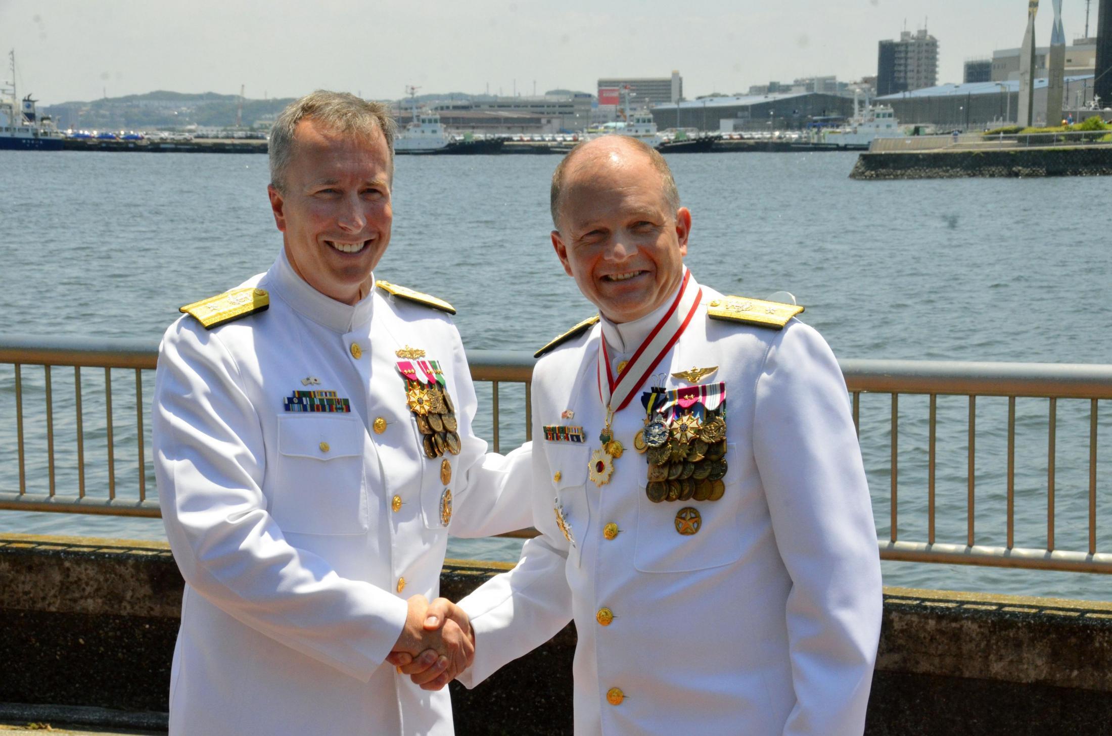 2017年6月から司令官を務めたグレゴリー・フェントン少将は退役する。交代式のあいさつで、在任中に横須賀基地を拠点とするイージス駆逐艦が静岡県・伊豆半島沖で衝突事故を起こした際、海上自衛隊などが捜索したことに触れ、謝意を示した。