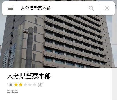 いまや生活に欠かせない存在とも言える地図検索サービス「グーグルマップ」で、大分県警本部の業種が「警備業」と表示されている。その他にも福岡県警本部は「公安局」に。宮崎県警や鹿児島県警など12県警本部も一時、「州警察」と表示されていた。思わぬ分類に警察関係者も困惑気味だ。