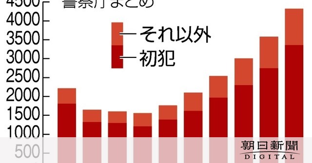 摘発内容は「所持」が最多の3531人で、全体の約8割だった。ほかには「譲渡」249人、「譲り受け」186人、航空貨物や国際スピード郵便を使った「密輸入」80人。近年増加傾向の「栽培」は164人で、4人に1人は暴力団関係者だった。
