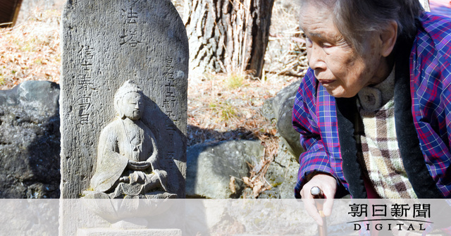 石仏が見つかったのは、長野県伊那市高遠町の弘妙(ぐみょう)寺。田中勲雄住職(78)は、敷地内の旧七面堂近くに大きめの石が埋まっていることに気がついていた。子供のころから寺に住む義母の笠井広子さん(88)は「ずっと土をかぶってたの。コケも生えてねえ」。