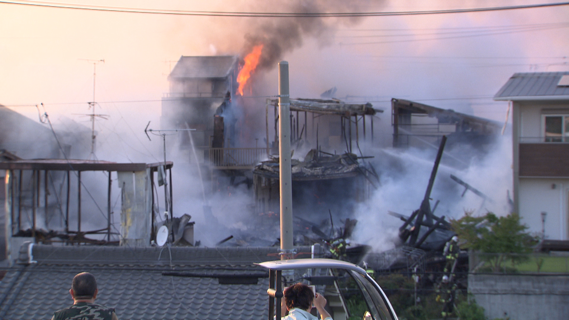 25日午後5時半過ぎ、愛知県清須市西枇杷島町南二ツ杁の住宅街で「家が燃えている」と通りがかった女性から消防に通報がありました。