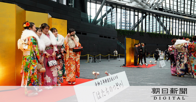 感染対策として、入り口には消毒液と検温用のサーモグラフィーを設置。新成人には、「撮影後は、友人らと会食には行きません。新成人として約束します」と書かれた「来場者カード」への記入とマスクの着用を求めた。スーツや晴れ着姿で訪れた新成人らは、会場内に設けられた金びょうぶの前で、記念写真に納まっていた。