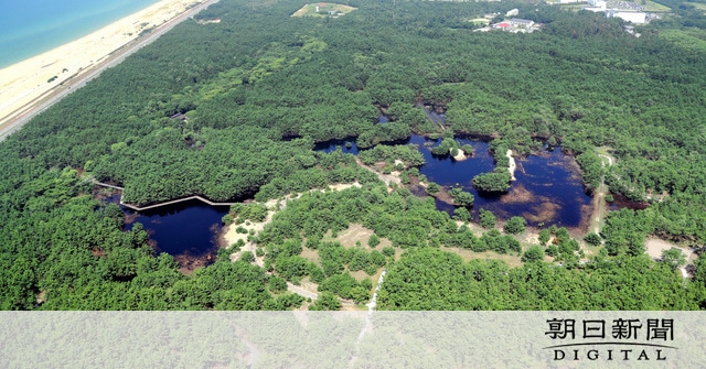 福岡市東区の海の中道海浜公園の一角に「幻の池」が出現中だ。大雨が降った後、地下水位が上昇して数年に一度、見られる現象という。