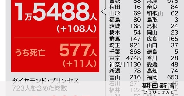 新型コロナウイルスの感染者は6日、午後9時現在で新たに108人が確認され、国内の感染者は計1万5488人となった。死者は11人増え、計577人となった。