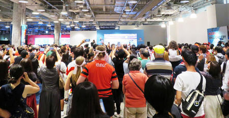 東京・有楽町のファンゾーン「東京スポーツスクエア」も沸きに沸いた。週末の土曜日ということもあり、PV会場には若者らが続々と訪れ、試合30分前には入場が規制されるなど熱気にあふれた。