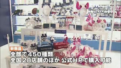 この日は店内で記念のセレモニーが行われ、マスコットキャラクターをデザインした谷口亮さんが早速、商品を手にしました。開催が近づく大会に向けて販売される新商品は全部で450種類で、全国28店舗のほか公式ホームページでも購入できます。