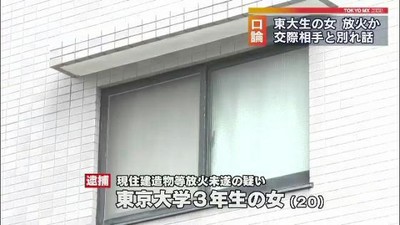 東京・渋谷区で交際相手の部屋に火を付けた疑いで、東京大学に通う女が逮捕されました。2人は別れ話から口論をしていて、男性が部屋から離れた際に犯行に及んだとみられています。