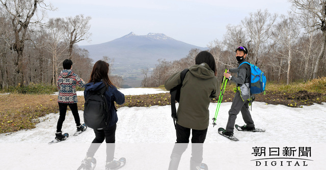 北海道七飯町の函館七飯ゴンドラが、山頂付近の残雪の原野をスノーシューで散歩するツアーを29日から始めた。スキー場の営業は4日に終わったが、標高約1千メートルの山頂付近は4月末も雪が残る。ふもとで桜が咲く季節に冬の名残の雪を楽しんでもらおうと初めて企画した。