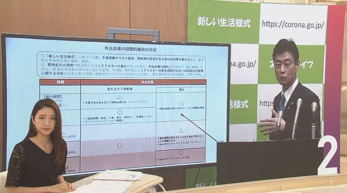 外出の自粛やイベントの開催制限、施設の使用制限については6月1日、19日、7月10日からの3週間程度ごとに区切って、3段階で緩和していく。