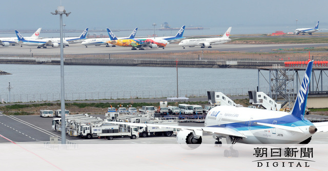 東京空港事務所によると、台風の時などには夜間に留め置くこともあるが、日中からこれほど多くの機体が並ぶのは異例だという。(飯塚悟)