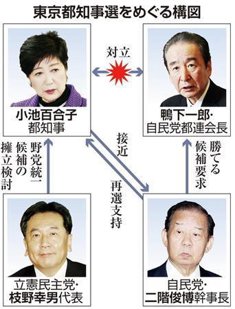 都連内には「小池憎し」の向きが強く、雪辱を果たそうと躍起になっているが、知名度の高い小池氏に対抗できる候補を擁立するのは容易ではない。丸川珠代元五輪相の名も挙がるが、本人は「国政で働きたい」と距離を置く。