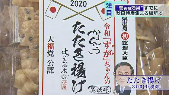 菅総理大臣の誕生が、東京都内で意外な形で表れています。「秋田県出身で初の総理大臣誕生」ということで、秋田のうまいものが集まるアンテナショップがにぎわいを見せています。 有楽町駅近くにある「秋田ふるさと館」は秋田の特産品など1300種類ほどが所狭しと並んでいます。店内には菅総理が生まれ育った秋田県湯沢市名物・稲庭うどんも販売されています。また、店の中心には急きょ、菅総理のイラストや写真が入った商品がまとめられた特設コーナーも作られました。