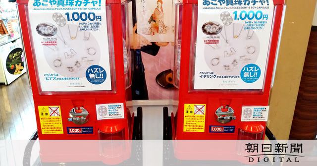 旅行や出張で訪れる人向けにおみやげを販売するこの店に今月1日、マシンが設置された。以降は地元の人が入れ代わり立ち代わり訪れる。お目当ては「あこや真珠ガチャ」だ。