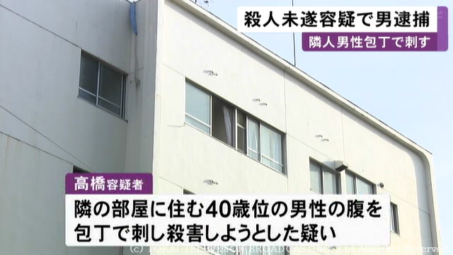 26日午後、名古屋市名東区の集合住宅で、隣に住む男性の腹を包丁で刺し、殺害しようとしたとして、男が逮捕されました。