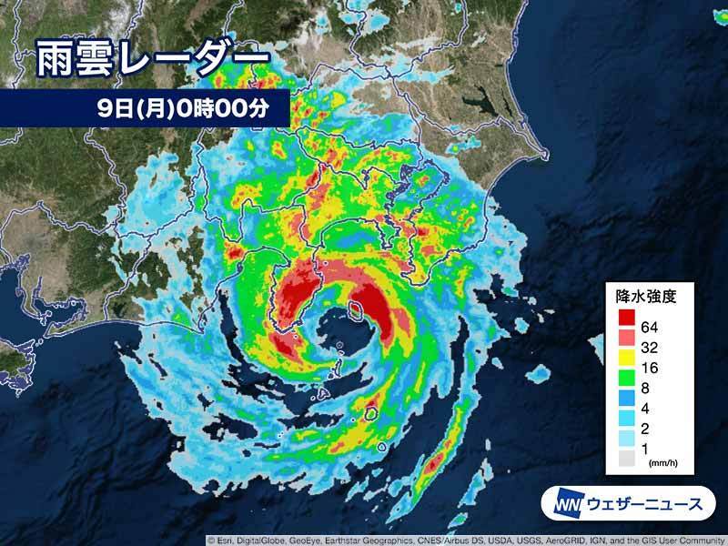 台風15号の影響で、8日(日)夜遅くから静岡県の伊豆半島などで激しい雨が降っています。