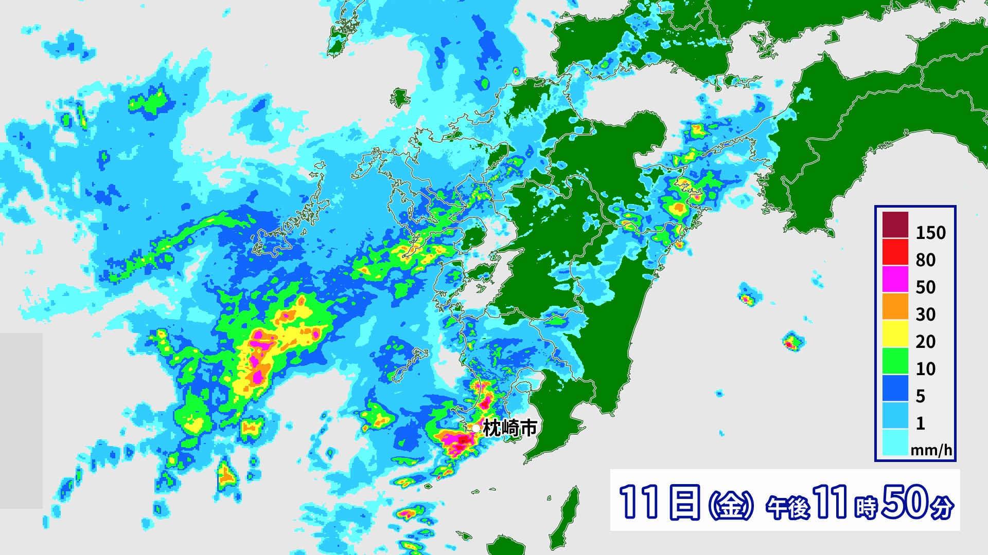 枕崎市付近 120ミリ以上(11日午後11時50分)