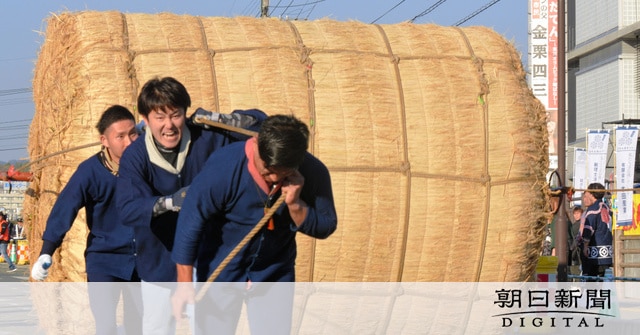 大俵は円柱状の芯に麦わらを巻き付けたもので、直径2・5メートル、長さ4メートル、重さ1トンと迫力がある。