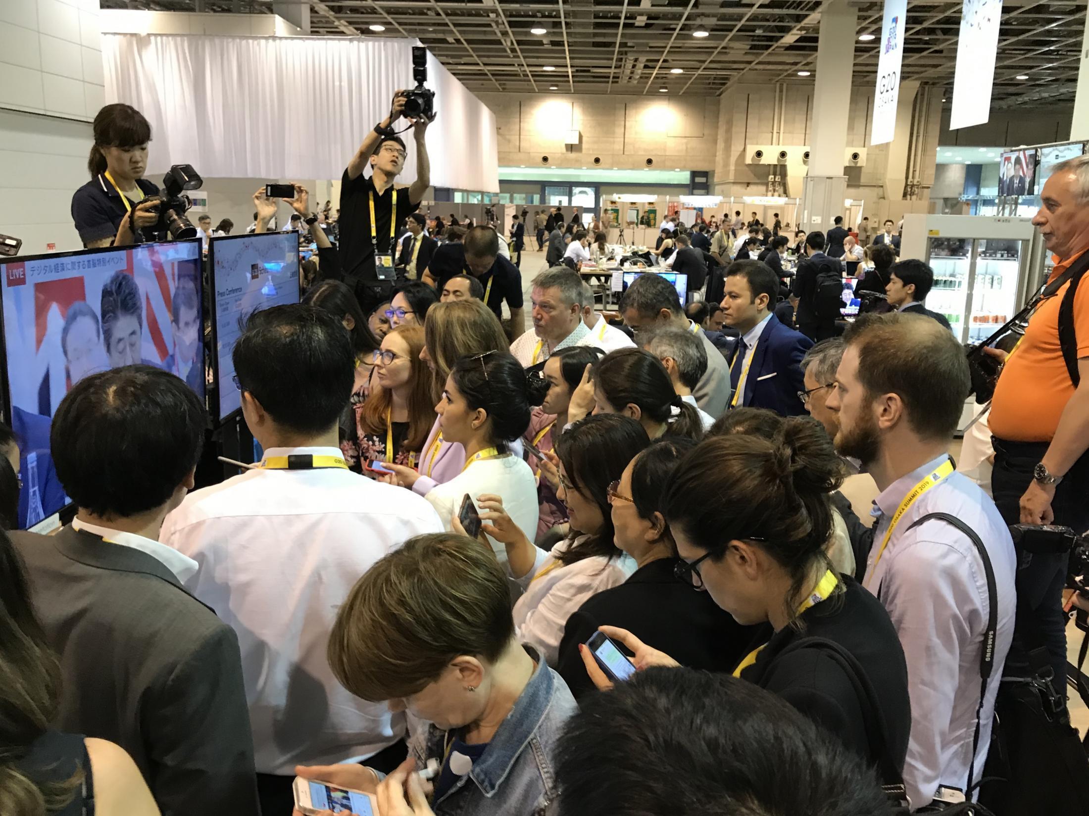 会場内に設けられた国際メディアセンターでは、用意された1200席にもおよぶワーキングスペースが、各国の報道陣でほとんど埋まっている。