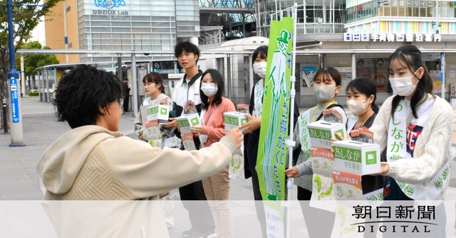 病気や災害などで親を亡くした遺児の奨学金を募る「あしなが学生募金」の活動が21日、高松市のJR高松駅前であり、大学生らが募金活動をした。22日も正午~午後6時、同じ場所である。