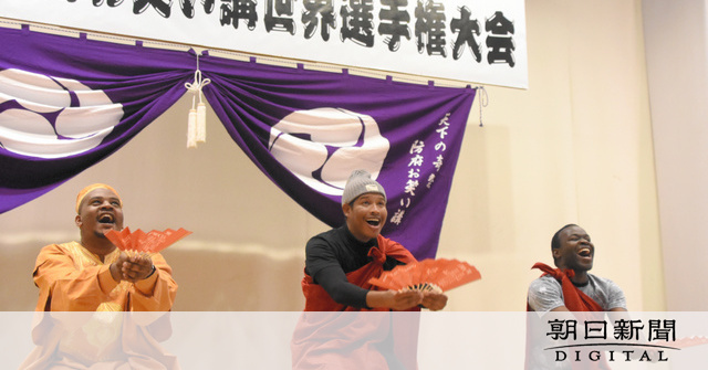 一年の憂さを笑いで吹き飛ばし、新年の幸せを願う「笑い講」が伝わる山口県防府市で14日、笑いっぷりを競う「第10回お笑い講世界選手権大会」が開かれた。アフリカや南米など海外出身者を含めた28チームが参加し、会場は大きな「笑い」に包まれた。